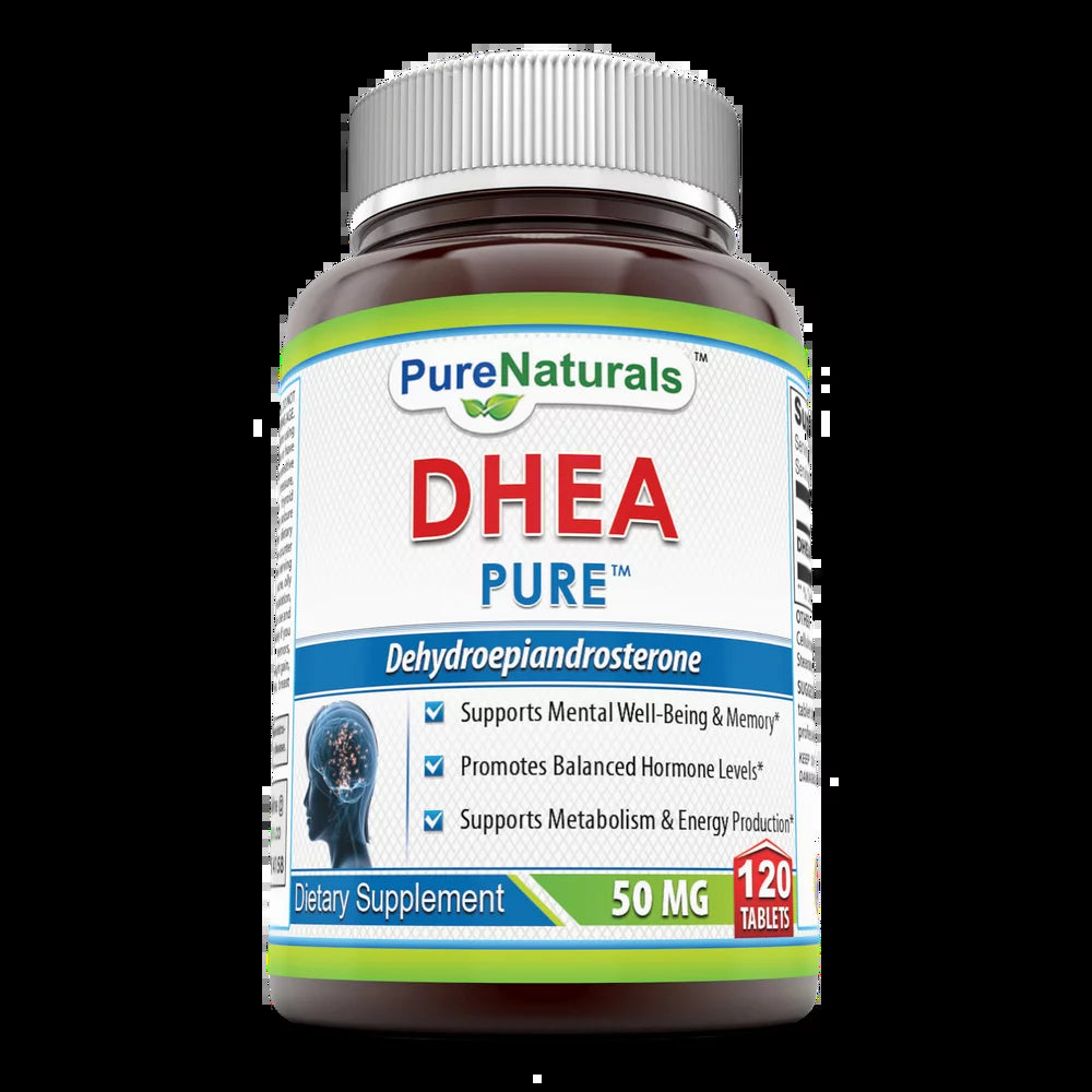 Pure Naturals DHEA 50mg Per Serving 120 Tablets Supplement | 50mg Per Pill | Non-GMO | Gluten Free | Made in USA