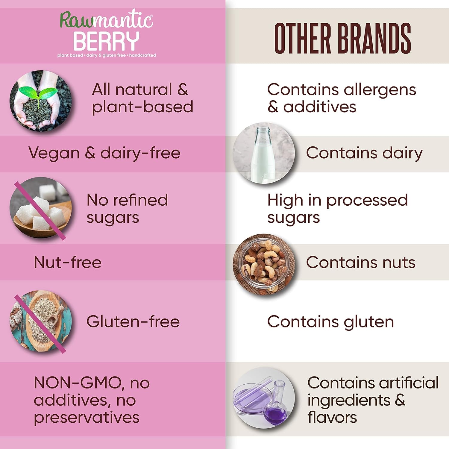 - MIXED BERRY FLAVOR: At Rawmantic, we believe that great taste and good health are not mutually exclusive, which is why we created the energy bar. Aside from having a nut-free dark chocolate bar they are all natural plant based snack bars! Individually wrapped to enjoy at the gym, off the field, or on the go.