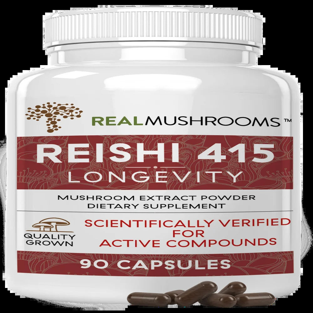 Real Mushrooms Reishi Mushroom Capsules for Longevity (90Ct) Vegan, Non-Gmo Reishi Extract, Reishi Mushroom Supplement for Relaxation, Better Sleep, Overall Wellness, Also Safe for Pets