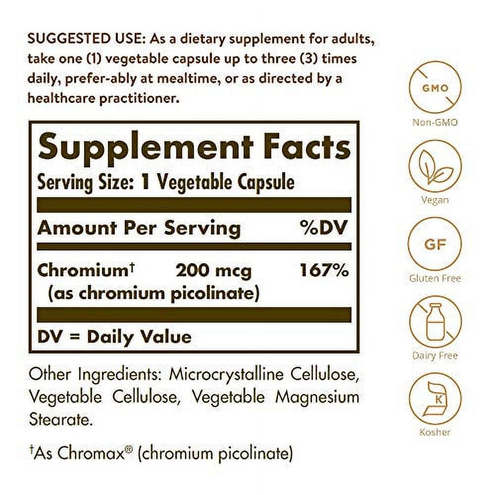 Solgar Chromium Picolinate 200 Mcg, 180 Vegetable Capsules - Supports Healthy Blood Sugar Metabolism - Non-Gmo, Vegan, Gluten Free, Dairy Free, Kosher - 180 Servings