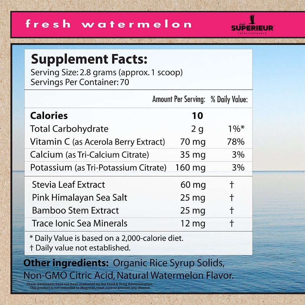 Superieur Electrolytes – Plant Based Electrolyte Supplement W/Sea Minerals for Hydration & Recovery – Keto Friendly, Non-Gmo, Zero Sugar, Vegan Healthy Sports Drink Powder – Watermelon (70 Servings)