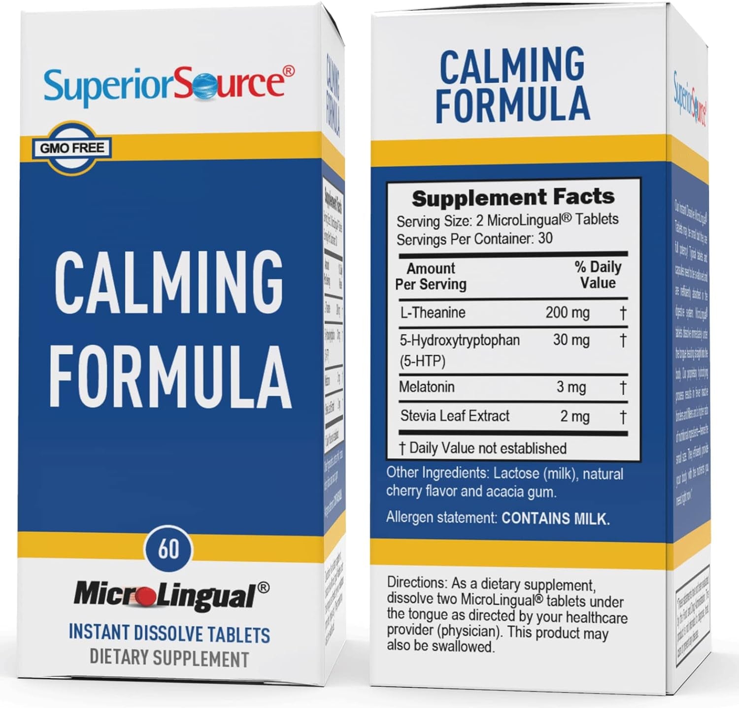 - MOOD & SLEEP SUPPORT – Feel more relaxed with Calming Formula. Synergistic formula enhances mood & well-being and relaxes the brain without drowsiness. This formula includes L-Theanine (200 mg), 5-HTP (30 mg) and Melatonin (3 mg). 5-HTP is the primary precursor to serotonin production and increased levels have been scientifically shown to promote positive mood and better sleep. Quick dissolving tablets promote rapid results vs. waiting for hard tablets to break down.