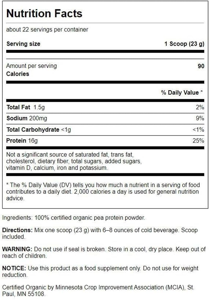 If you're looking for a premium quality, non-GMO pea protein powder supplement to round out your nutritional regimen, Swanson 100% Certified Organic Pea Protein Powder Non-GMO is just what you need! Great for vegans or anyone for whom dairy-based proteins aren't an option, pea protein is close to perfect when it comes to human nutrition. It features a terrific balanced amino acid profile that includes high concentrations of branched-chain amino acids and glutamine, which makes it ideal for fueling lean muscle development. That's why more and more strength-training athletes and body builders are turning to pea protein as a quality vegetarian alternative to whey protein products. Plus, it's easy to digest, so it doesn't cause the discomforting gassiness and bloating so often experienced with other protein supplements. Our 100% Certified Organic Pea Protein Powder Non-GMO is a pure protein source, delivering 16 grams of protein with only 80 calories and 1 gram of fat per serving. Its mild flavor makes it a welcome addition to any smoothie, juice or sports beverage, or you can add it to foods for a protein boost. It's an affordable way to incorporate more protein into your health and fitness regimen. This product was featured in Prevention's 6 Healthiest Protein Powders for Your Smoothie.