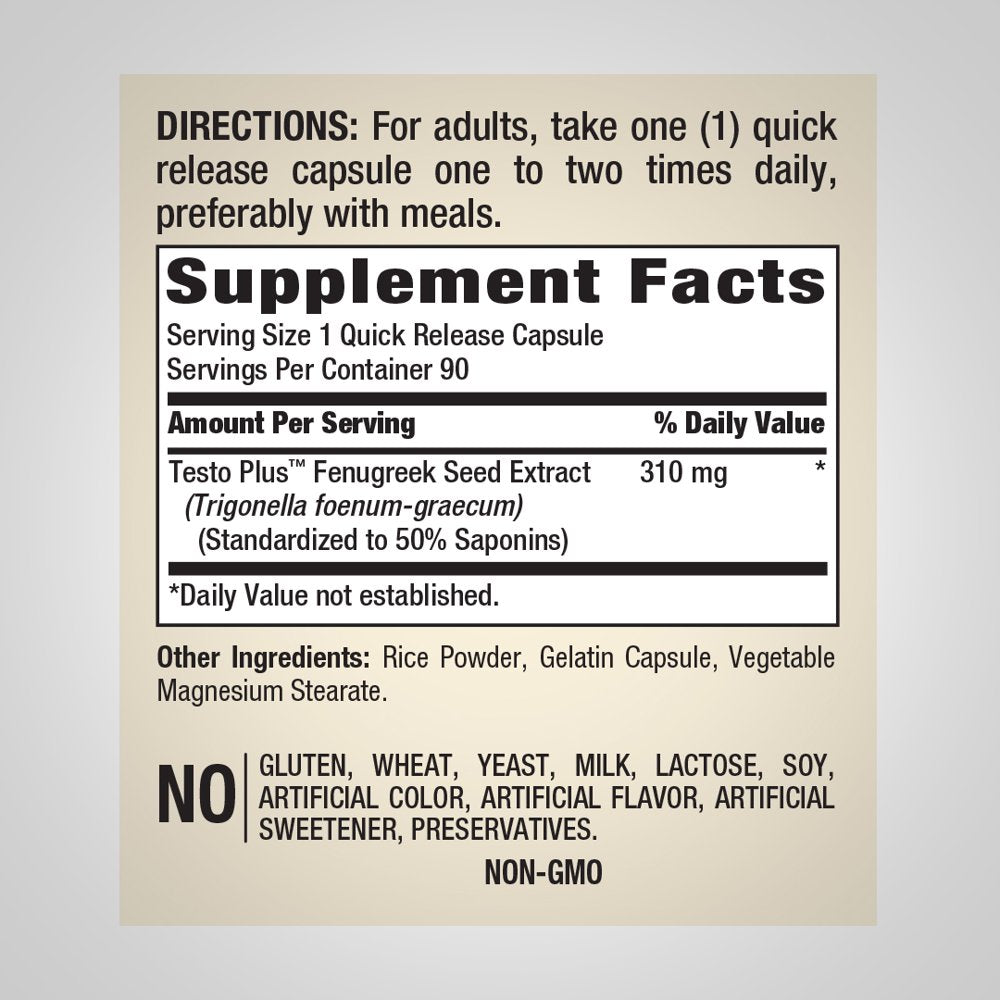 Testoplus Fenugreek Extract 310 Mg | 90 Quick Release Capsules | Non-Gmo, Gluten Free | by Piping Rock