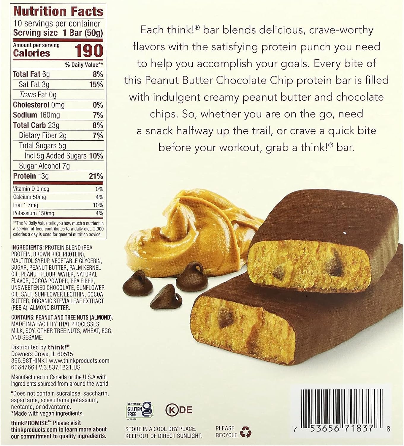 - Includes 10 think! Peanut Butter Chocolate Chip bars