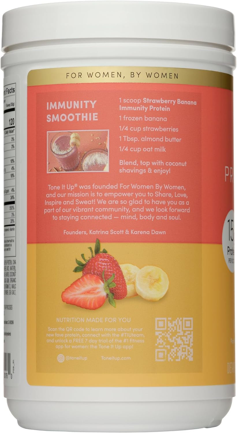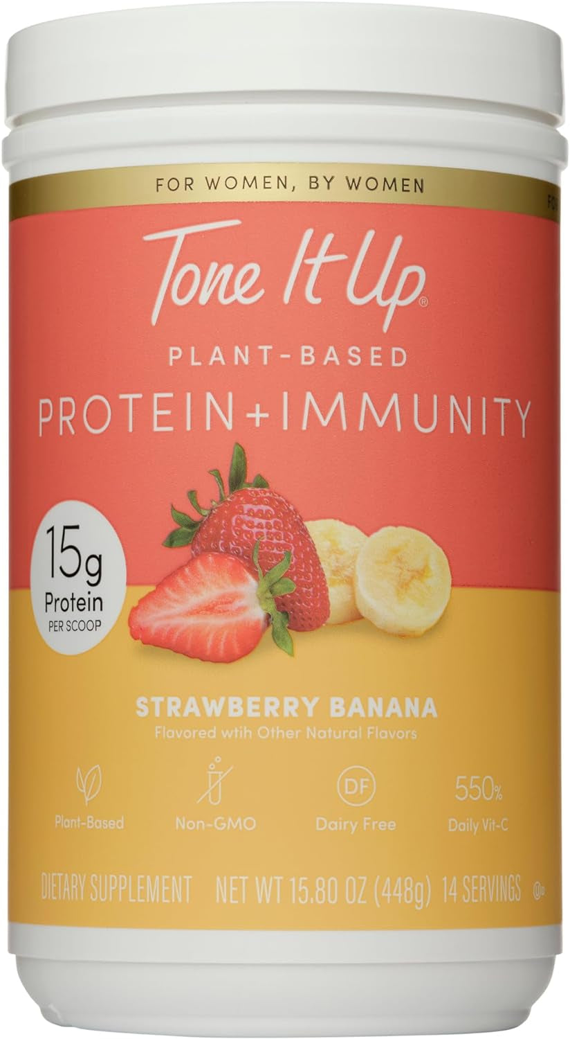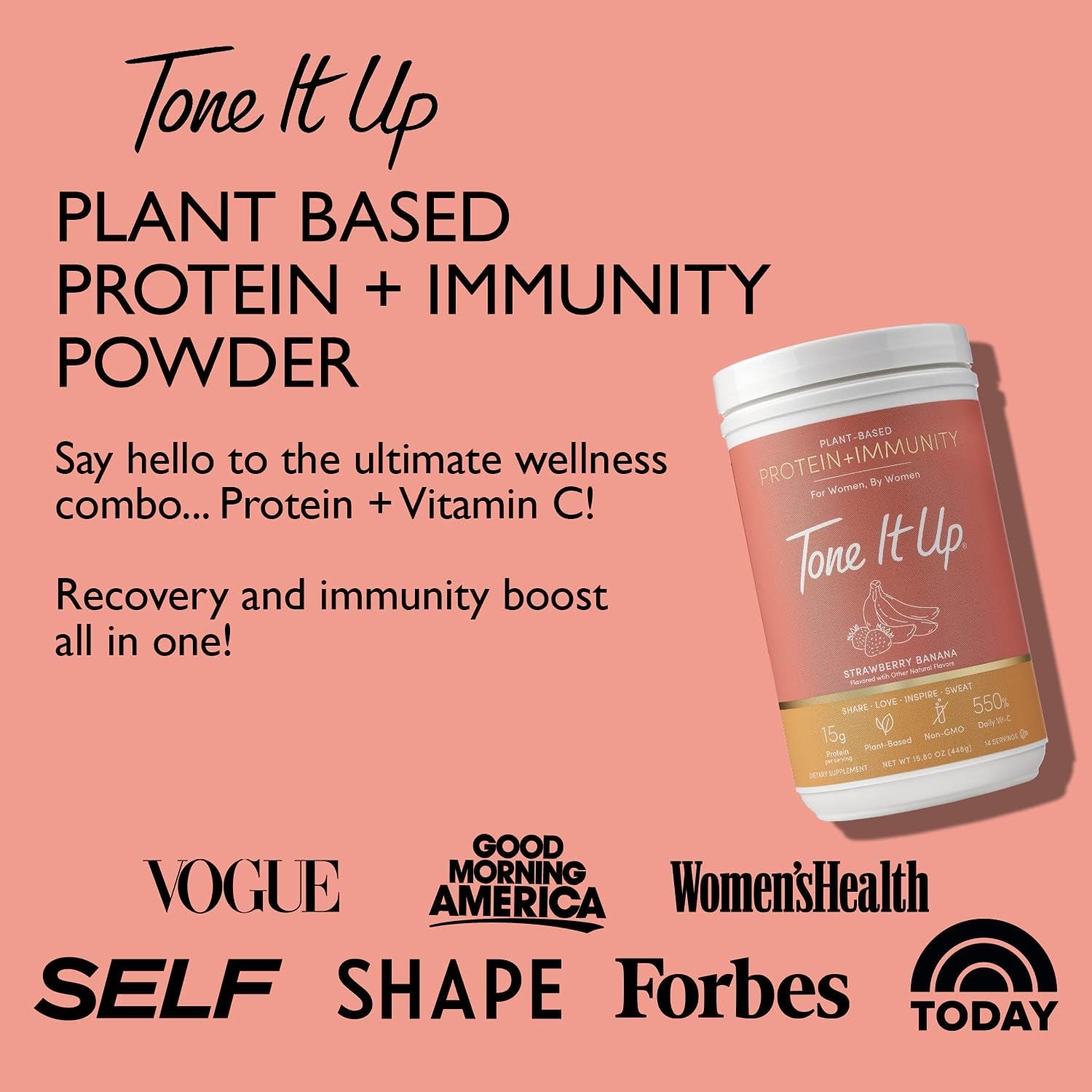 Tone It up Plant Based Protein + Immunity Powder I Dairy Free, Gluten-Free, Kosher, Non-Gmo Pea & Chia Seed Protein and Oat Milk for Women I 14 Servings, 15G of Protein + Vitamin C – Strawberry Banana