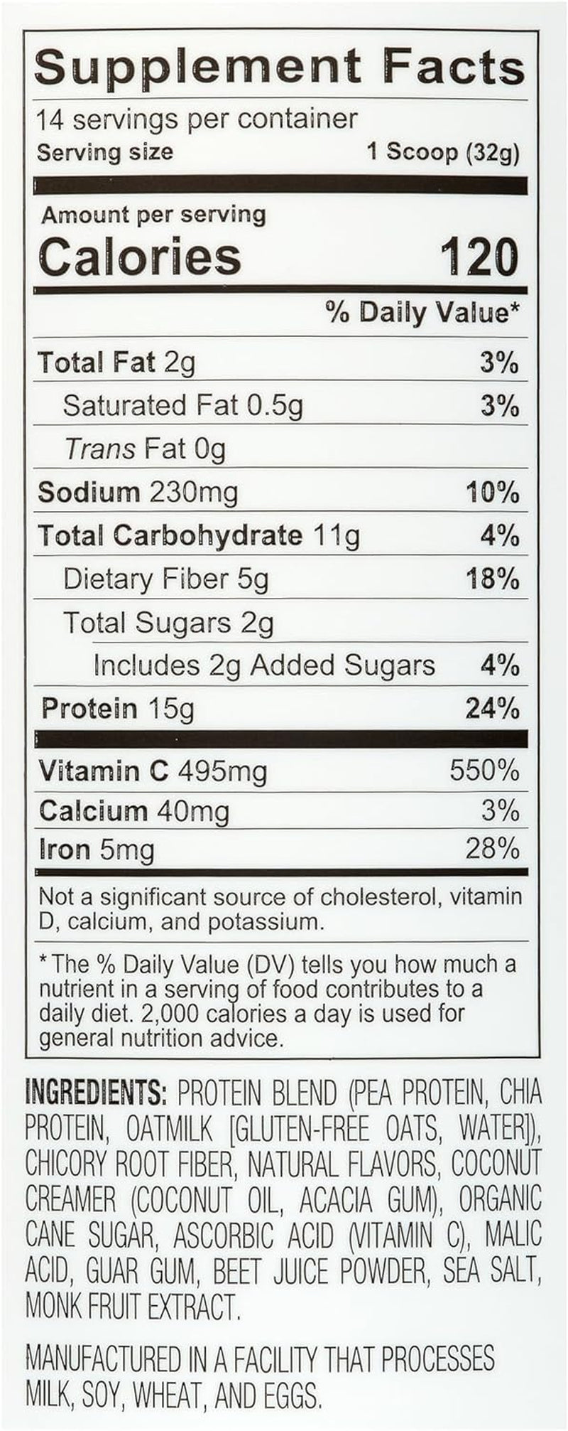- 15 GRAMS OF PROTEIN: Delivering 15 right-sized grams and 120 calories of delicious, velvety smooth plant-based pea protein per serving to stave hunger plus 550% daily recommended value of Vitamin C to keep you satisfied and support immunity to ensure you stay energized to reach your health goals.