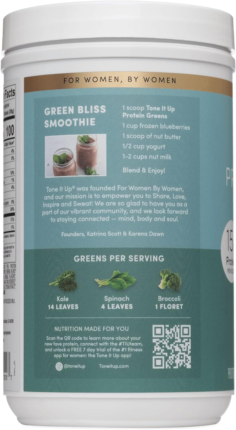 Tone It up Plant Based Protein Powder + Greens I Dairy Free, Kosher, Non-Gmo Pea & Pumpkin Seed Protein for Women I 14 Servings, 15G of Protein – Vanilla