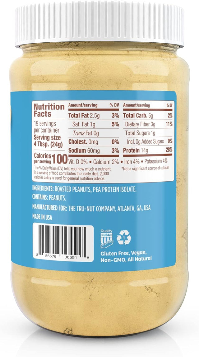 Tru-Nut Plant Based Peanut Butter Protein Powder - Vegan Protein Powder, Non Dairy, Gluten Free, Non GMO, Natural Protein Powder 16Oz