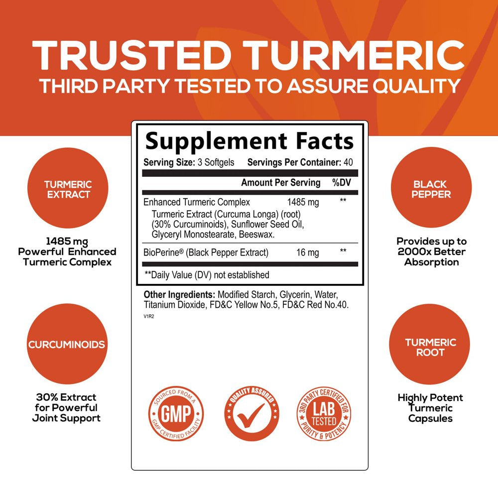 - Trusted Formula: Our Turmeric Curcumin is formulated and manufactured following strict cGMP guidelines; Our Turmeric Supplement is third party tested to assure the quality and purity of each batch