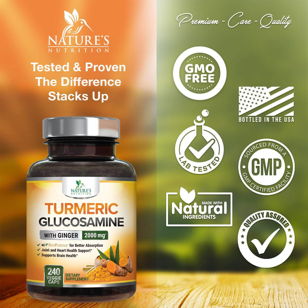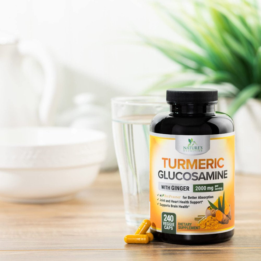 | Product Name | Turmeric Curcumin with BioPerine, Ginger & Glucosamine 95% Curcuminoids 2000mg - Black Pepper for Max Absorption, Joint Support, Nature's Tumeric Extract Supplement, Non-GMO - 240 Capsules |