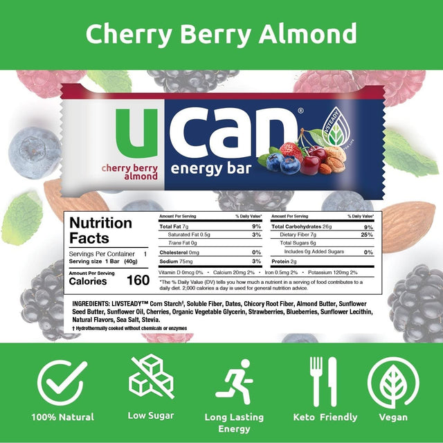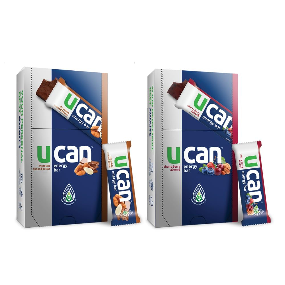 UCAN Chocolate Almond Butter & Cherry Berry Energy Bars Bundle - No Added Sugar, Soy-Free, Non-Gmo, Vegan, & Keto-Friendly
