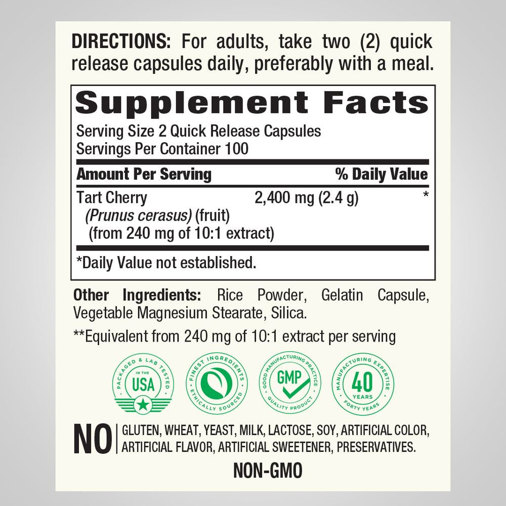 Ultra Tart Cherry, 2400 Mg (Per Serving) | 200 Quick Release Capsules | Non-Gmo, Gluten Free | by Piping Rock