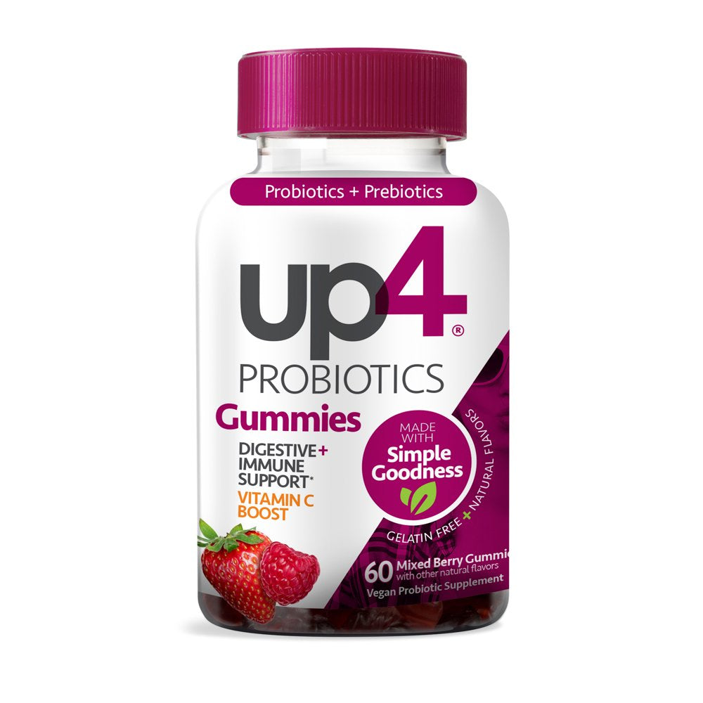 Up4 Probiotic Gummies, Digestive and Immune Support with Prebiotics and Vitamin C, Gluten Free, Vegan, Non-Gmo, 60 Count