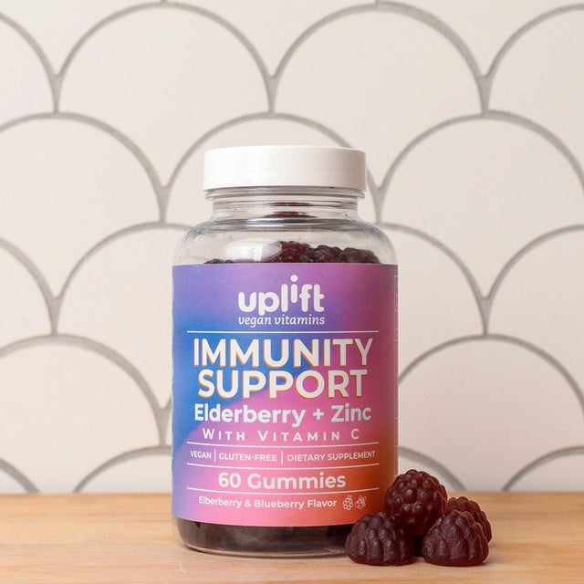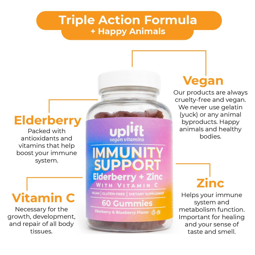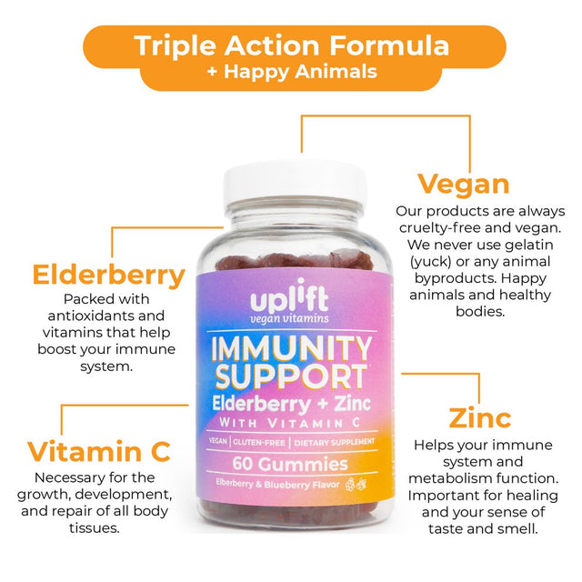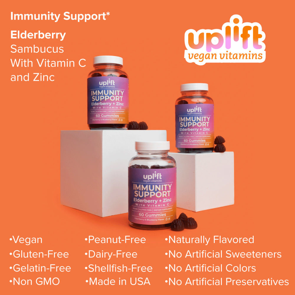 Uplift Immunity Vegan Gummies, Elderberry, Zinc, Vitamin C, 60 Ct Immune Support - Gluten-Free, Non GMO