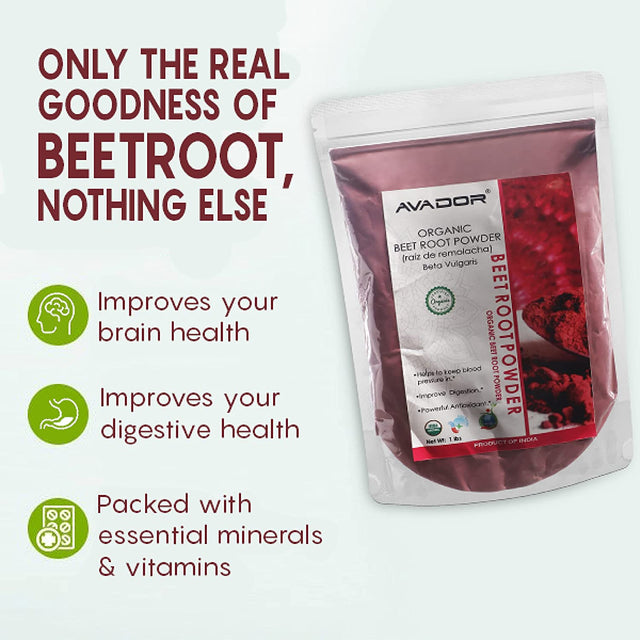 AVADOR USDA Certified Organic All Natural Beetroot Powder 1 Lbs Non GMO | Nitric Oxide Booster*