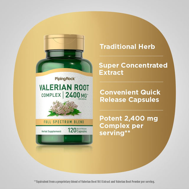 Valerian Root Capsules 1,200 Mg | 120 Count | Non-Gmo, Gluten Free | by Piping Rock