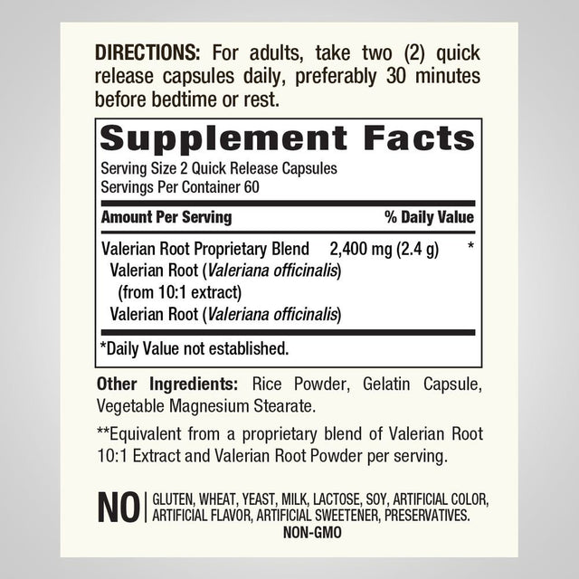 Product Name Valerian Root Capsules 1,200 mg | 120 Count | Non-GMO, Gluten Free | By Piping Rock