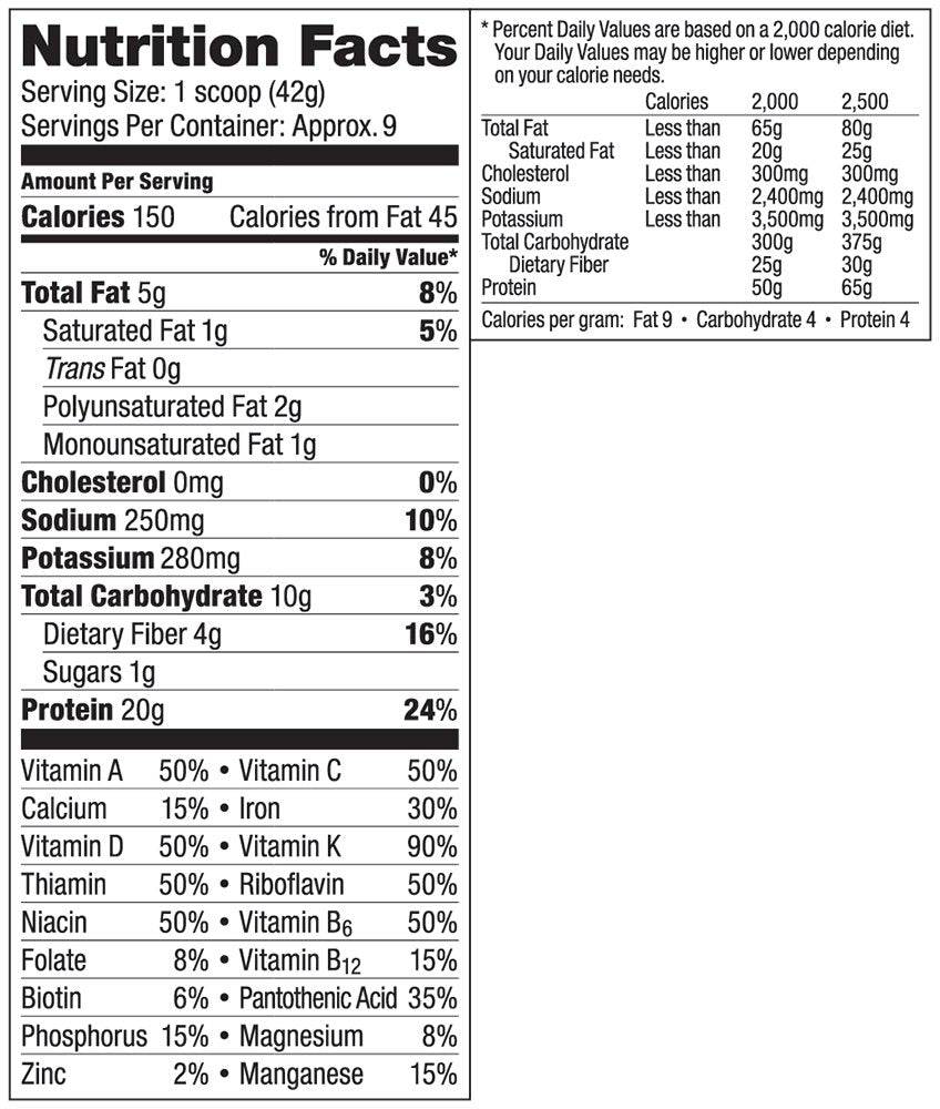 - Plant-Based Protein: 20g of protein from a complete multisource blend of organic pea protein, organic sunflower seed protein, and organic pumpkin seed protein