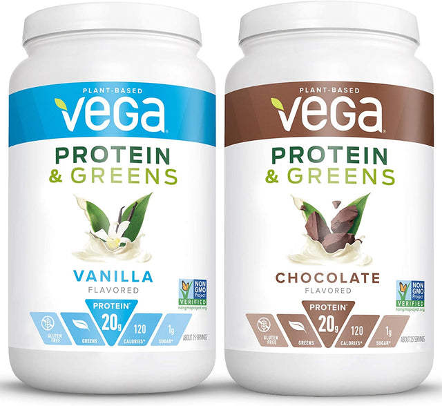 Vega Protein & Greens Bundle, Chocolate + Vanilla (25 Servings Each) - Plant Based Protein Powder, Keto-Friendly, Gluten Free, Non Dairy, Vegan, Non Soy, Non GMO, Lactose Free