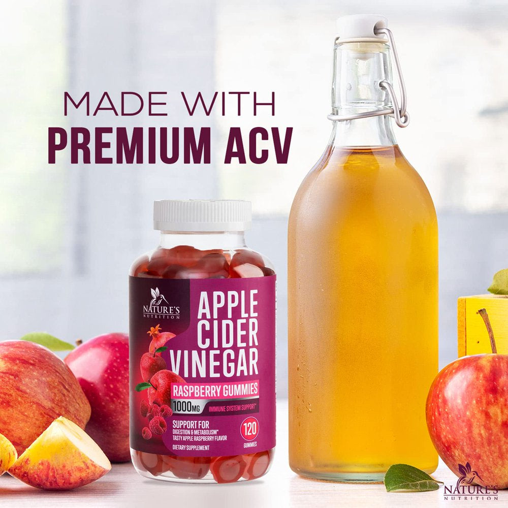 Vegan Apple Cider Vinegar Gummies 1000Mg for Detox and Cleanse, Nature'S ACV Gummy Vitamins B12 Supplement for Digestion, Natural Apple Raspberry Flavor, Non-Gmo, Gluten Free for Adults - 120 Gummies