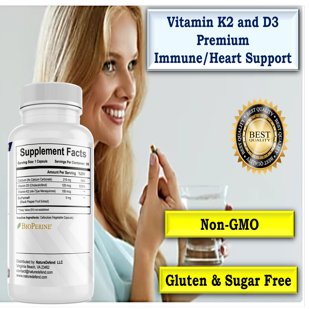 Vitamin K2+D3, Supports Strong Bones, Heart and Immune Health, Non-Gmo. US Veteran Owned, Free Shipping, Quality Matters!