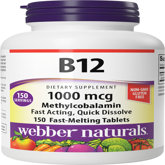 Webber Naturals Vitamin B12 1,000 Mcg, 150 Fast-Melting Tablets, Supports Energy Production and Metabolism, Gluten Free, Non-Gmo, Vegetarians - 150 Fast-Melting Tablets is backordered and will ship as soon as it is back in stock.