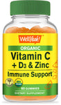 Wellyeah Organic Vitamin C + D3 + Zinc Gummies - Immune Boosting, Antioxidant-Rich, and Bone Health Supporting, USDA Organic, Vegan, and Non-Gmo - Gluten-Free, Nut-Free Gummy - 60 Count