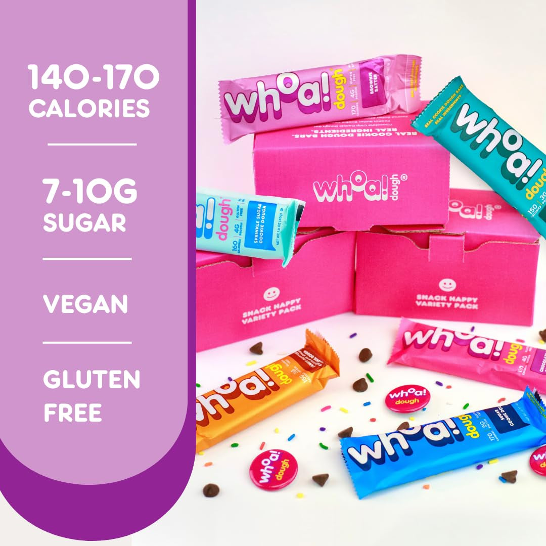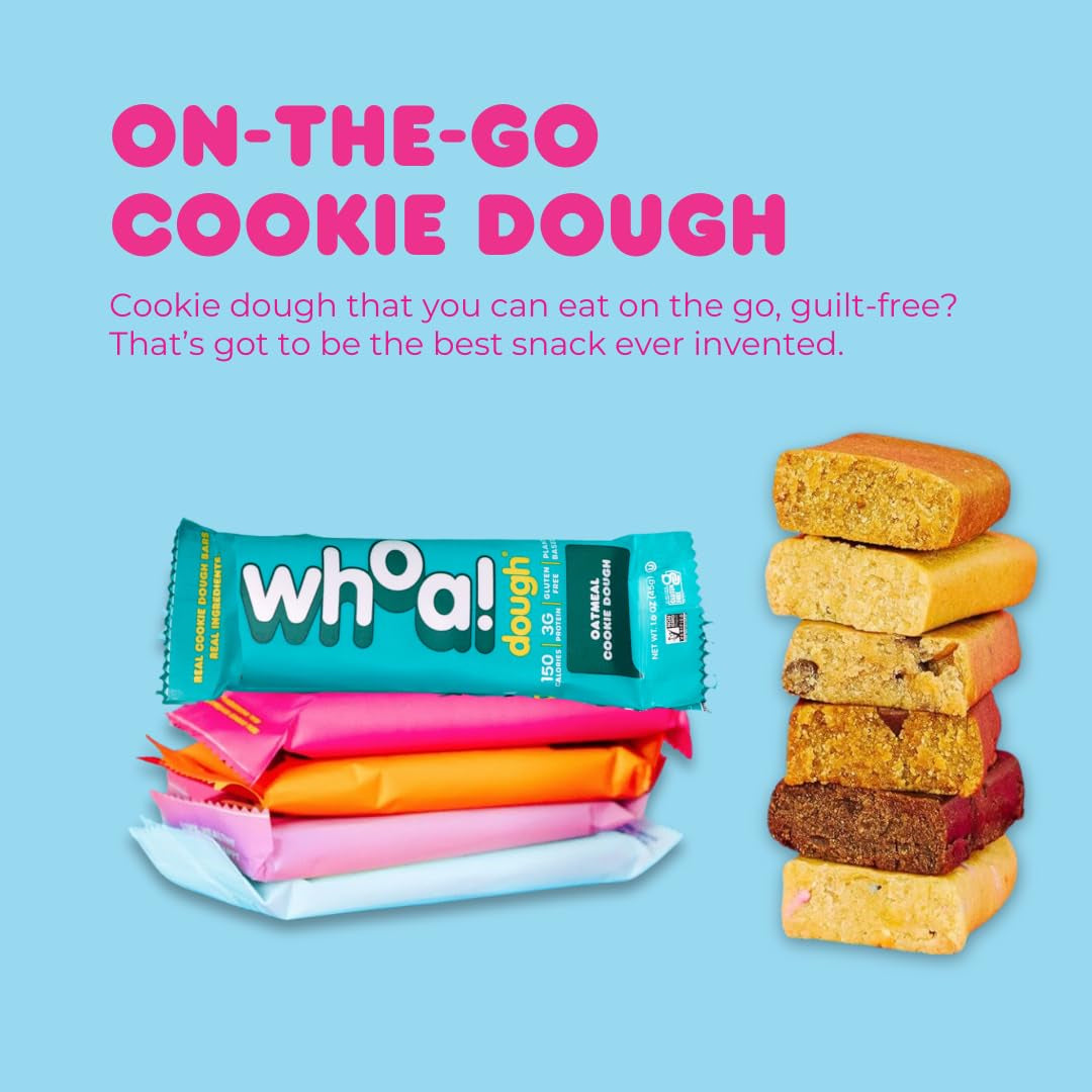 Whoa Dough Edible Cookie Dough Bars- Certified Non-Gmo, Kosher and Gluten Free Bars - Healthy Snack Foods - Plant Based Snacks - Real Ingredients - Variety Pack (6 Bars)