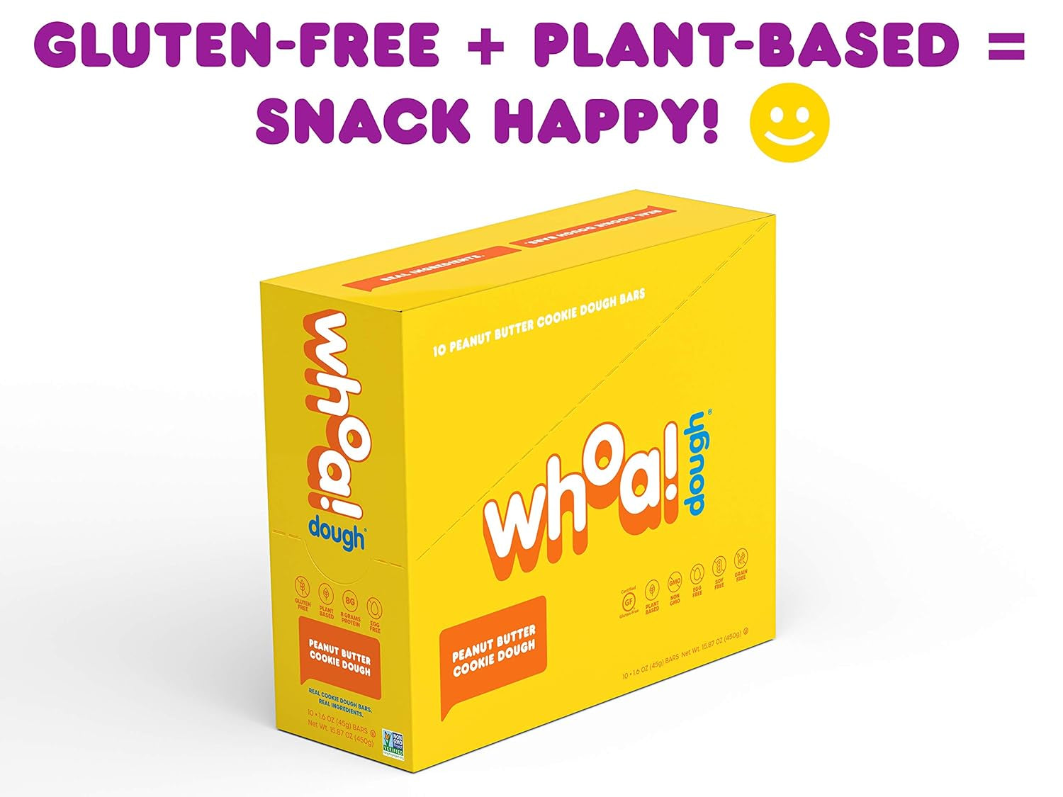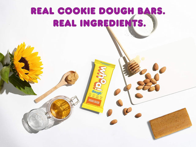 WHOA DOUGH Plant Based Protein Bar, Gluten Free, Dairy Free, Non GMO, Healthy Snacks for Kids and Adults, 8G Protein, 10 Bars (Peanut Butter)