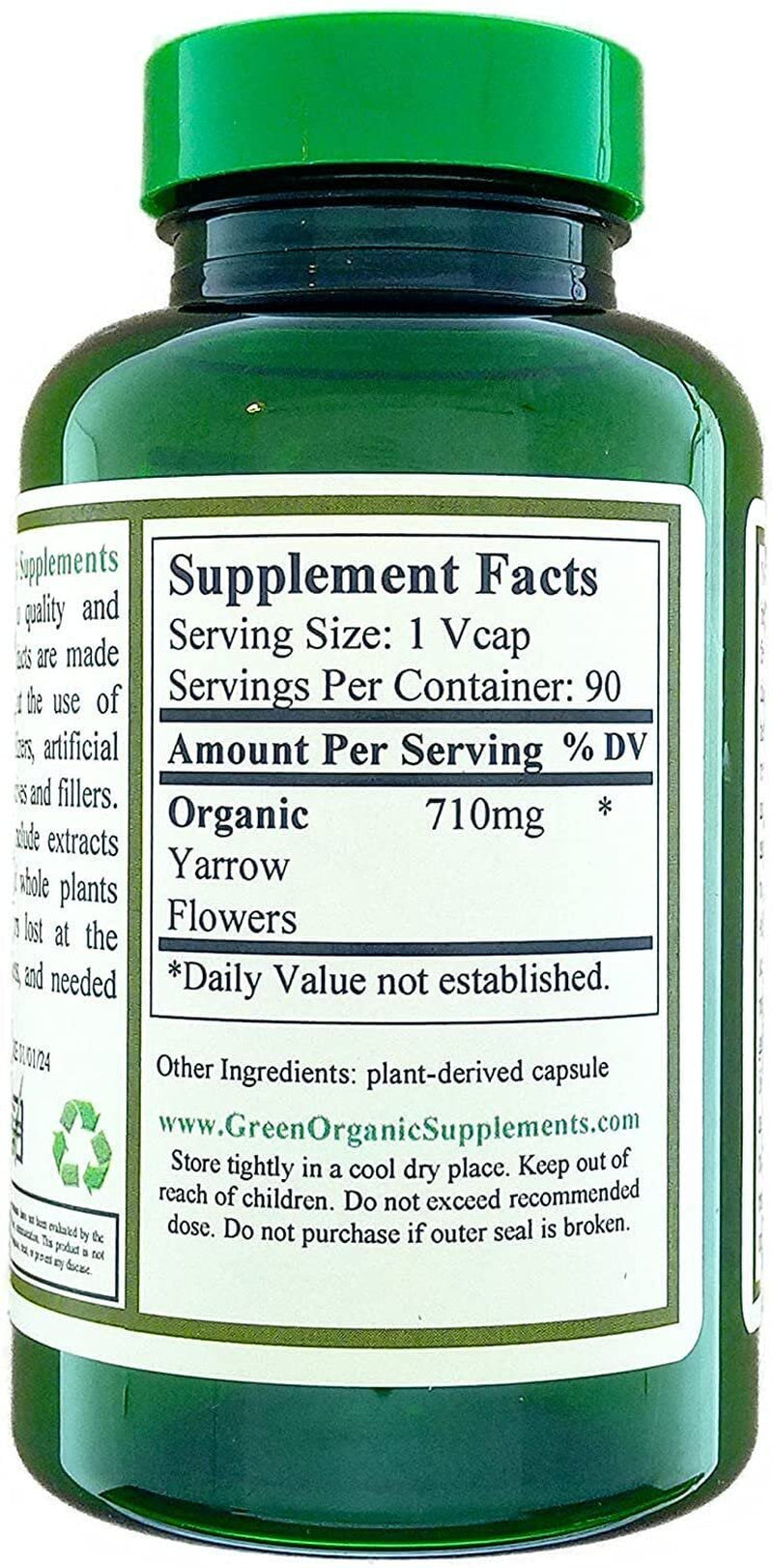 | Product Name | Yarrow Flower, 90 VCaps, Non-GMO, Gluten-Free, Green Organic Supplements (Single) |