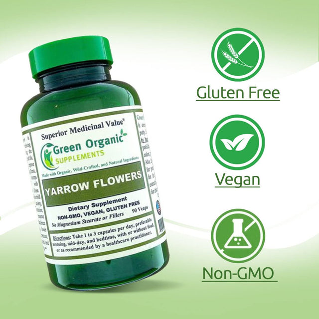 Yarrow Flower, 90 Vcaps, Non-Gmo, Gluten-Free, Green Organic Supplements (Single)