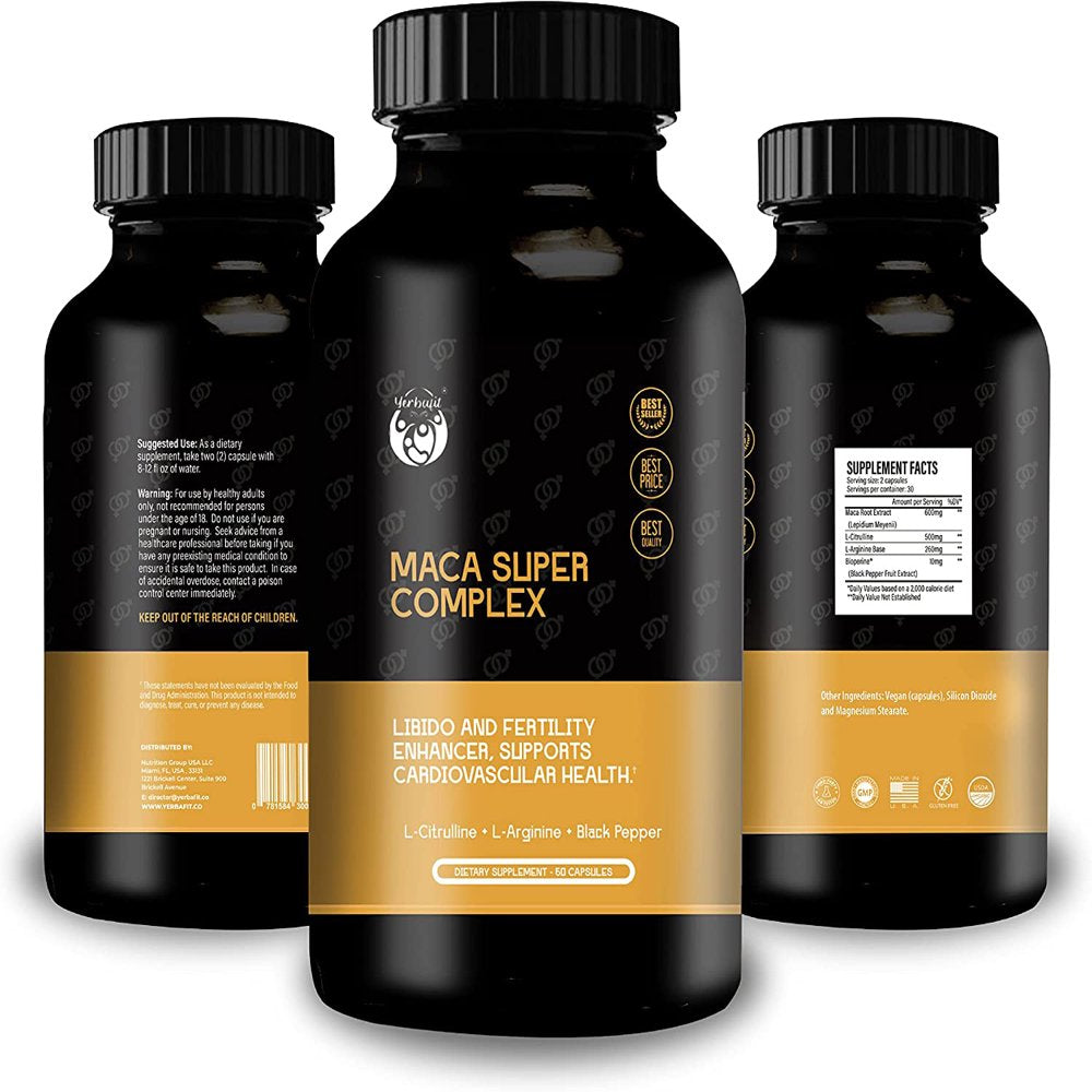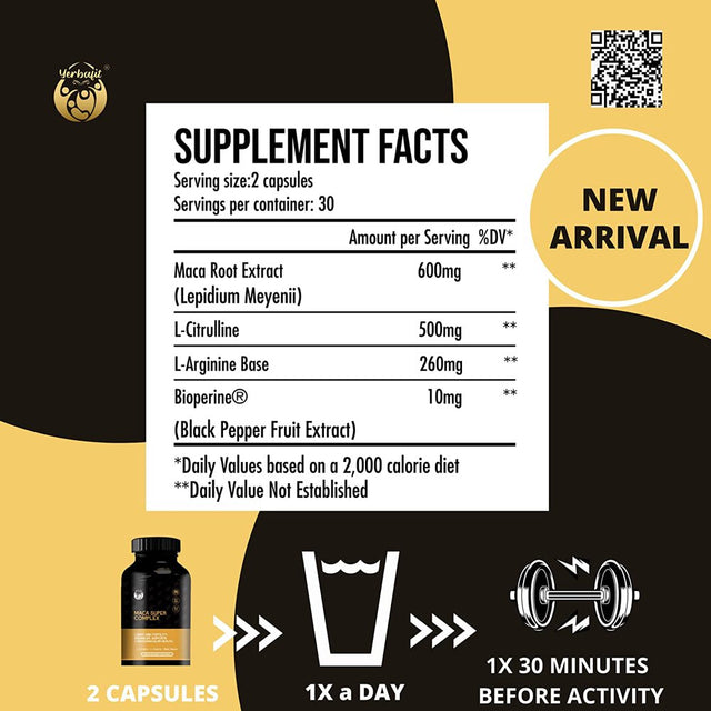 Yerbafit Maca Super Complex Supplement Capsules for Energy-Strength-&-Mood Support, for Women & Men with L-Citrulline, L-Arginine Base and Bioperine, GMO & Gluten Free | 60 Vegan Capsules is backordered and will ship as soon as it is back in stock.