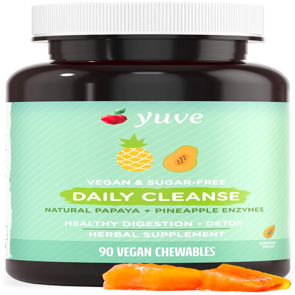 Yuve Natural Papaya Digestive Enzymes - Sugar-Free Chewable Candies - Promotes Better Digestion - Constipation & Bloating Aid, Detox, Leaky Gut Repair & Gas Relief - Vegan, Non-Gmo, Gluten-Free - 90Ct