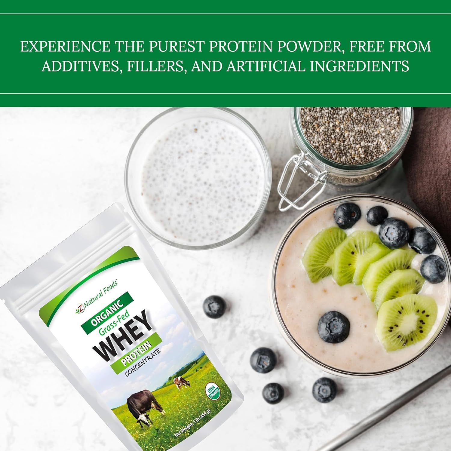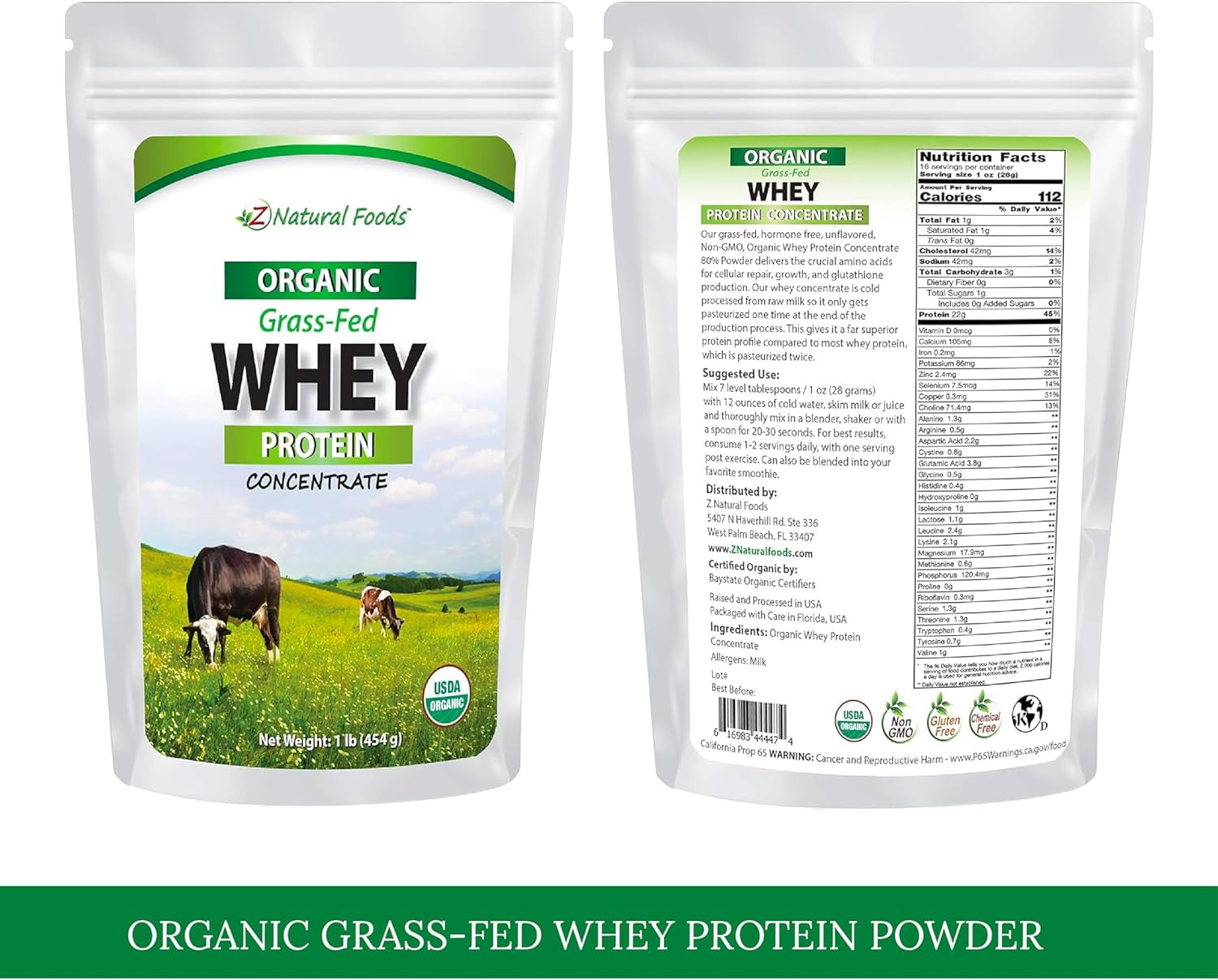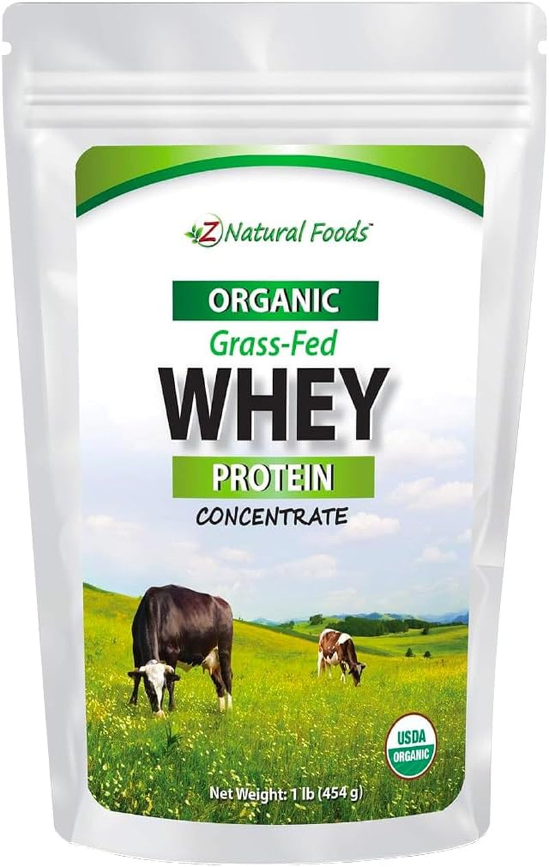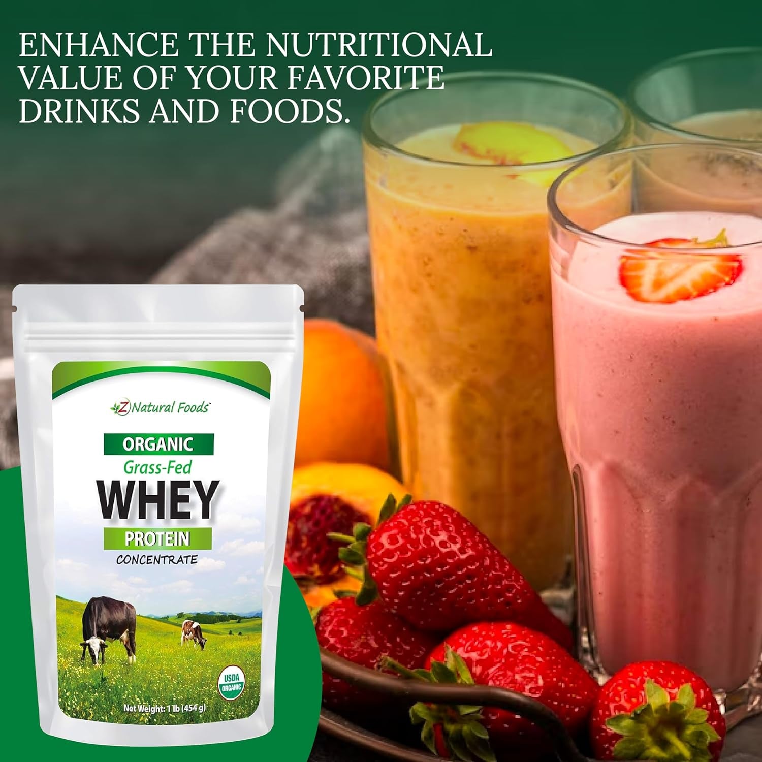 Z Natural Foods Organic Grass-Fed Whey Protein Powder, Nutrient Rich, Unflavoured & Hormone Free Protein Powder, Great in Shakes, Smoothies, Paleo, & Keto Drinks, Gluten Free, Non-Gmo, 1 Lb