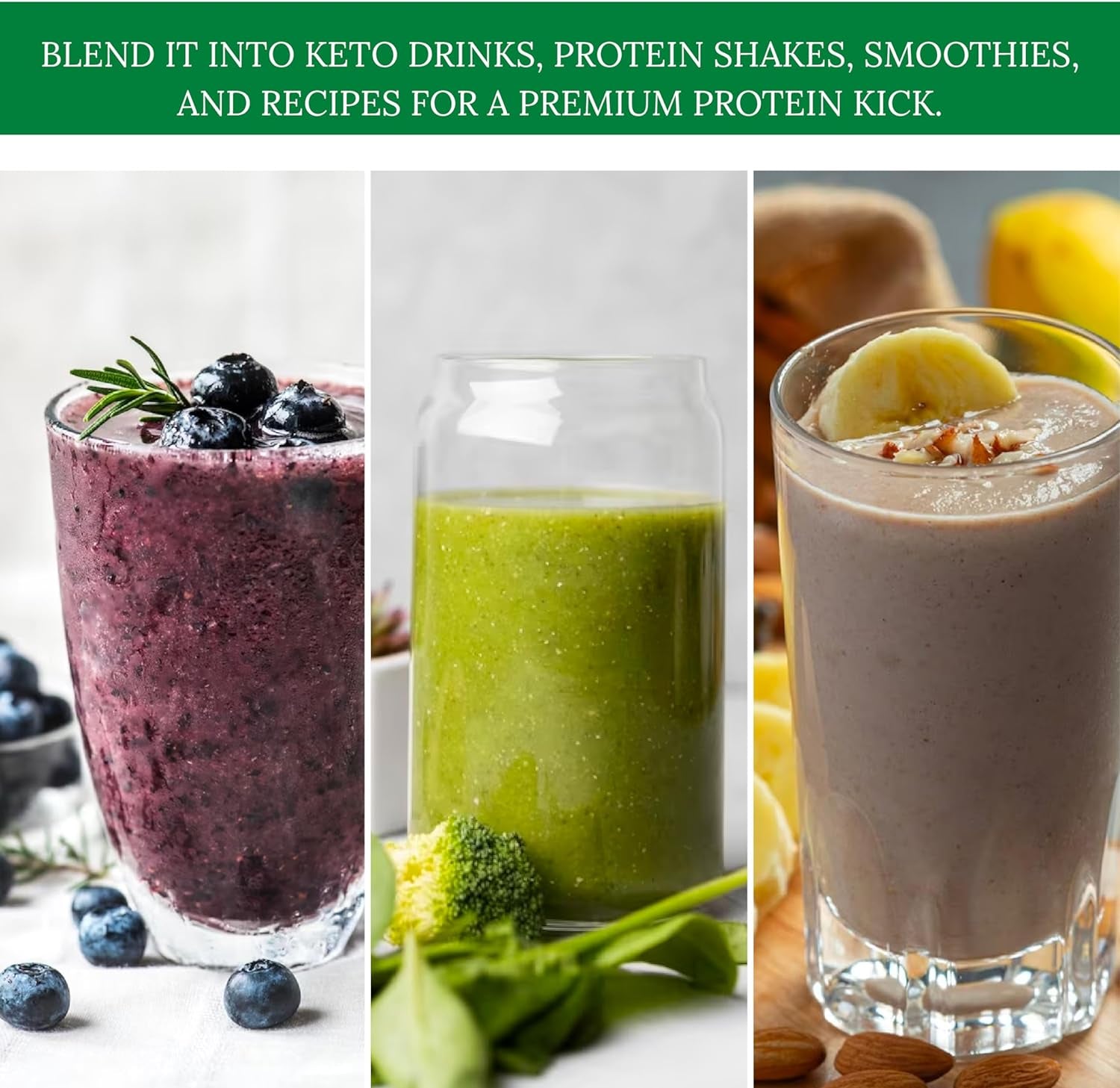 - Versatile Mixing: You can easily blend our unflavored whey protein into keto drinks, protein shakes, smoothies, and recipes to effortlessly incorporate a high-quality protein boost into your daily routine.