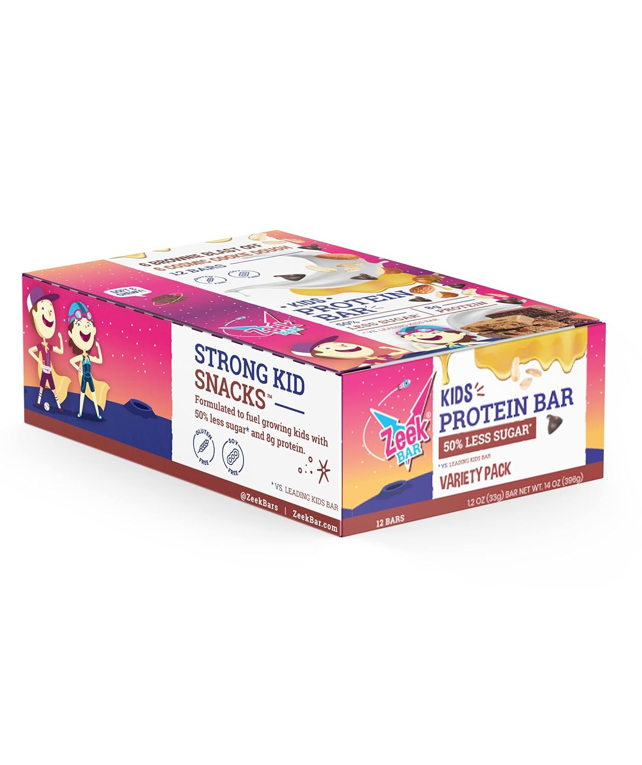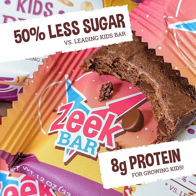 ZEEK BAR - Kids Protein Bars - 50% Less Sugar, 8G Protein - All Natural, Non-Gmo, Gluten Free - Variety, 12 Count