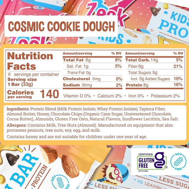 ZEEK BAR - Kids Protein Bars - 50% Less Sugar, 8G Protein - All Natural, Non-Gmo, Gluten Free - Variety, 12 Count - Variety (Brownie Blast Off Cosmic Cookie Dough) / 1 Count (Pack Of 12) is backordered and will ship as soon as it is back in stock.