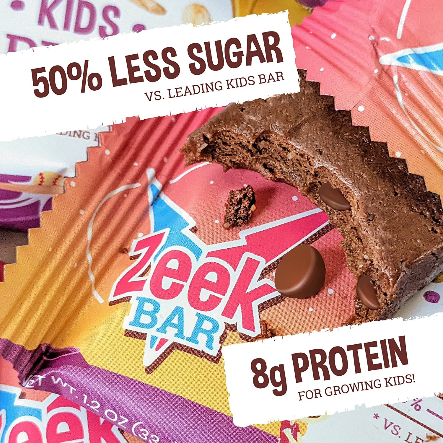 - 50% LESS SUGAR, KIDS PROTEIN BAR: Zeek kids bars have 50% less sugar than the leading kids granola bar from all natural sources like honey and chocolate chips.