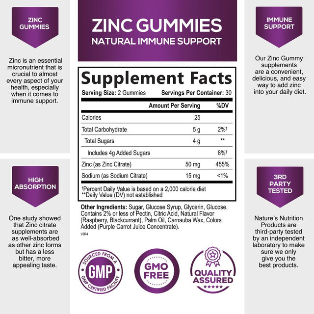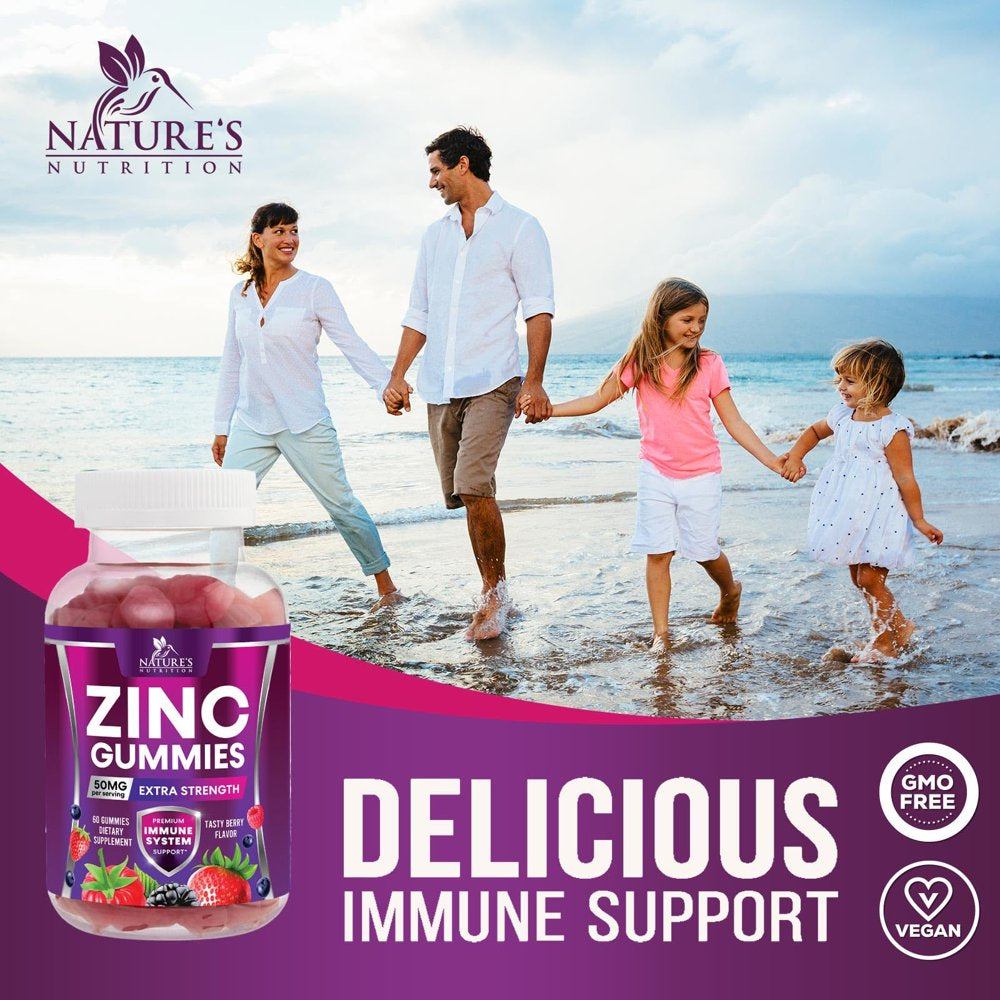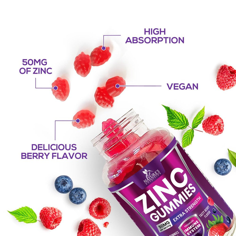 - Zinc 50mg Gummies: Each zinc gummy offers 50mg of zinc, crucial for supporting your immune system; A key immune support supplement for your health all year