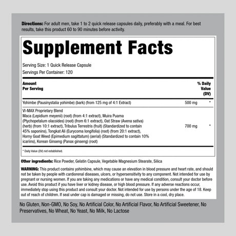 Vi-Max | 120 Capsules | Male Formula | Specialized Blend | Non-Gmo, Gluten Free | by Piping Rock