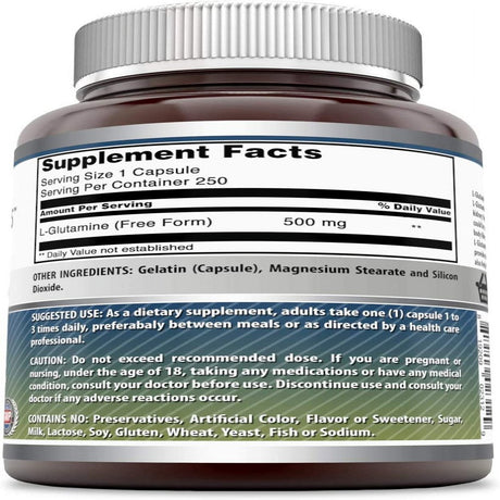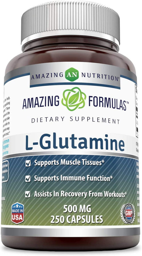 Amazing Formulas L-Glutamine 500Mg 250 Capsules Supplement , Non-Gmo , Gluten Free , Made in USA