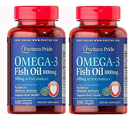 Puritan'S Pride Omega-3 Fish Oil 1000Mg (300Mg Active Omega-3) Softgel 2 Pack