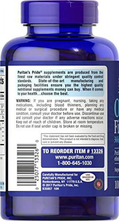 Puritans Pride Omega-3 Fish Oil 1000 Mg, 100 Count