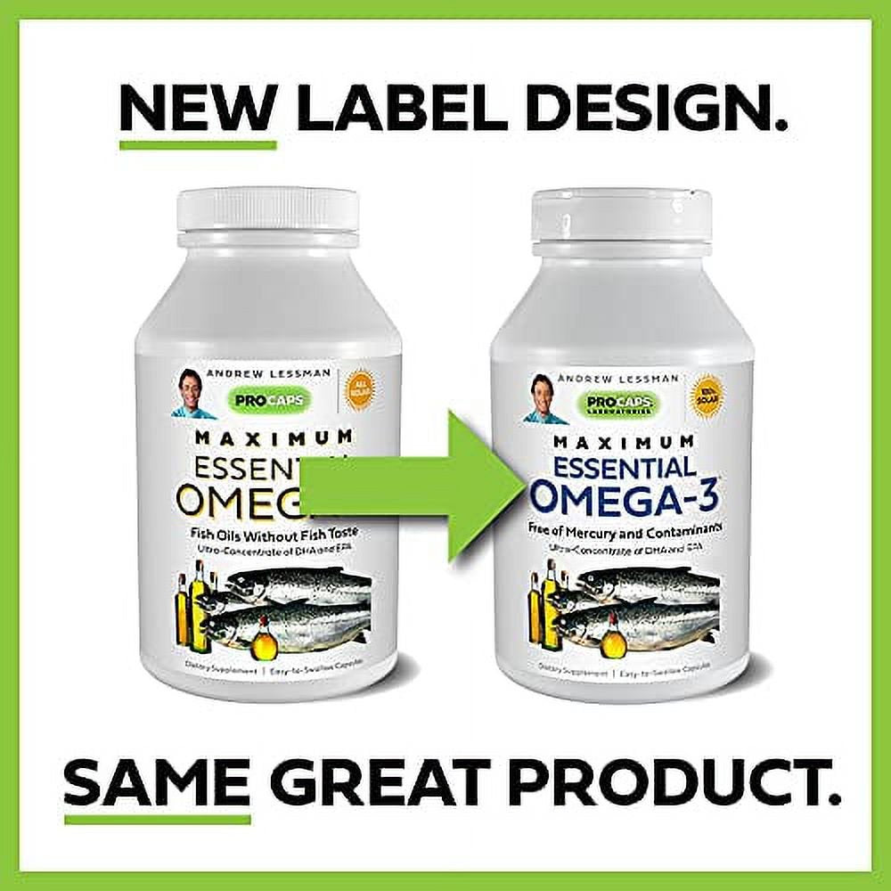 NEW LABEL DESIGN. SAME GREAT PRODUCT! Andrew Lessman?s Maximum Essential Omega-3 is our highest potency blend of ultra-pure Omega-3s. Our Omega-3s exist in their most active, natural triglyceride form