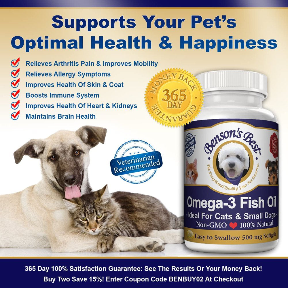 Benson'S Best Omega-3 Fish Oil for Cats & Small Dogs. Provides 43% More Omega-3 than Salmon Oil! 100% Pure, Natural & Non-Gmo, 200 Easy to Swallow 500 Mg Softgel Capsules: Ideal for Cats & Small Dogs!