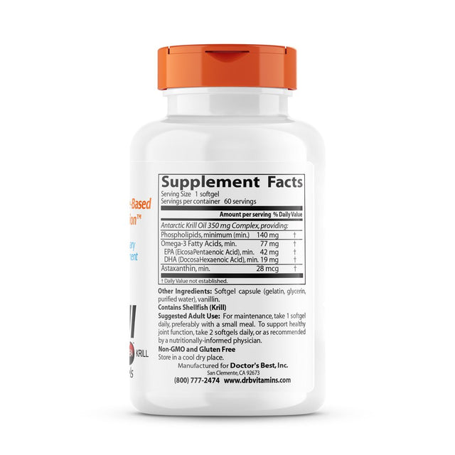Doctor'S Best Real Krill, Non-Gmo, Gluten Free, Highly Active Omega-3'S, 60 Softgels