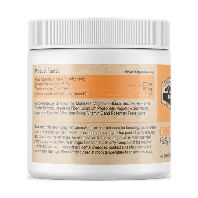 • Omega 3 with EPA & DHA Plus Vitamin E for Dogs and Cats: Each chewy treat contains skin-nourishing nutrients sourced from freshly caught fish in a 100% natural formula made for maximum absorption.