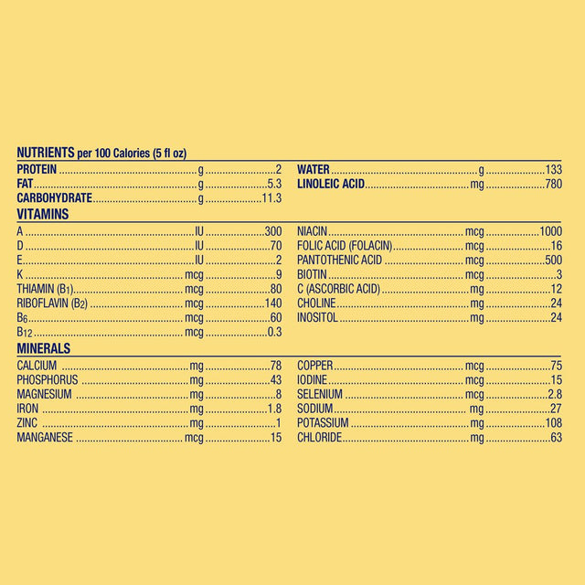 Nonfat milk, lactose, vegetable oil (palm olein, coconut, soy and high oleic sunflower oils), whey protein concentrate, whey protein-lipid concentrate††, and less than 2%: 2'-Fucosyllactose**, galactooligosaccharides‡‡, polydextrose‡‡, Mortierella alpina oil§§, Schizochytrium sp. oil||||, calcium carbonate, Calcium Phosphate, Cupric Sulfate, Ferrous Sulfate, Magnesium Oxide, Manganese Sulfate, Potassium Chloride, Potassium Citrate, Potassium Iodide, Sodium Chloride, Sodium Selenite, Zinc Sulfate, Soy Lecithin, Choline Chloride, Inositol, Ascorbic Acid, Biotin, Calcium Pantothenate, Folic Acid, Niacinamide, Riboflavin, Thiamin Hydrochloride, Vitamin B12, Vitamin B6 Hydrochloride, Vitamin D3, Vitamin K1, Vitamin E Acetate, Vitamin A Palmitate, Taurine, L-Carnitine.†† A source of MFGM (milk fat globule membrane composed of proteins and fats) components**A source of 2'-FL HMO (2'-fucosyllactose human milk oligosaccharide)‡‡ A type of prebiotic.§§ A source of arachidonic acid (ARA).|||| A source of docosahexaenoic acid (DHA)./div>