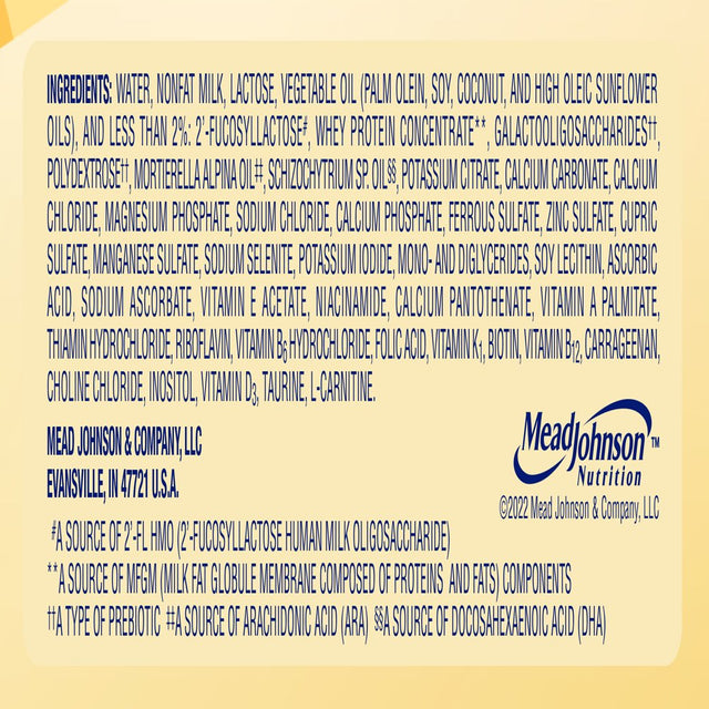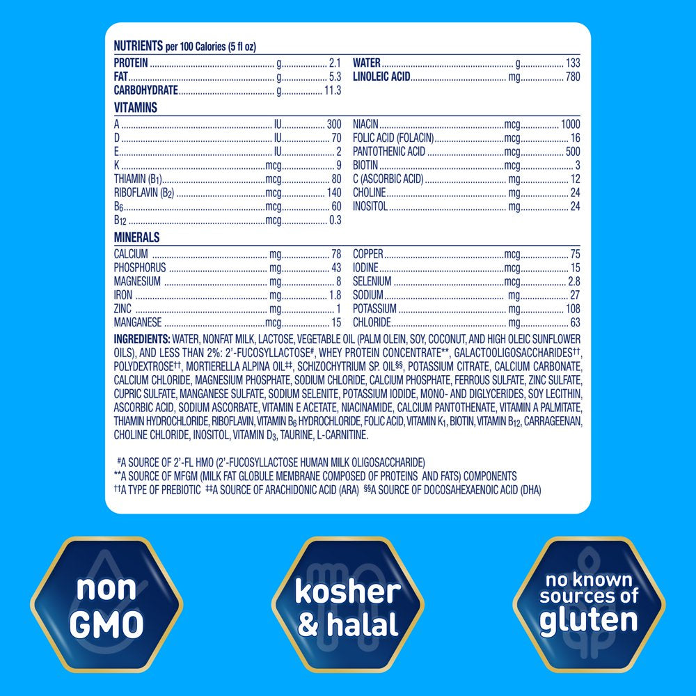 Enfamil NeuroPro isn't just a formula; it's the result of decades of dedicated research for your baby's best start. Our formula has brain-building nutrition and has MFGM components shown to support your baby’s brain development now through age 5. Only Enfamil NeuroPro has both expert-recommended brain-building DHA and an exclusive HuMO6 immune blend. By choosing Enfamil NeuroPro, you’re opting for the #1 recommended brand by pediatricians and parents. Inspired by the nourishing qualities of breast milk, our formula offers complete nutrition and easy-to-digest proteins. This ensures a supportive foundation for your little one’s journey as they enjoy Enfamil NeuroPro during their first 12 months of life, with cognitive development benefits through 5 years of age. We create a world of complete nutrition and developmental support!